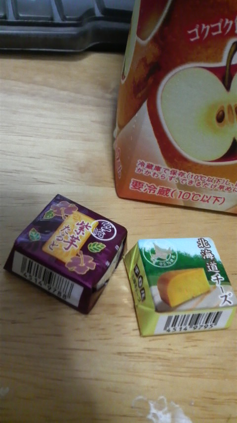 ■最後に、本日コンビニで買ったチロルチョコをば。紅芋タルトはアリで、北海道チーズはナシでした。個人的に。チーズ、好きなんだけどな…甘いものとしょっぱいものが同時にくるとちょっとな…。
