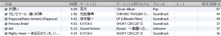 そして本当突然ですが、自分のitune再生回数ランキングBest6!